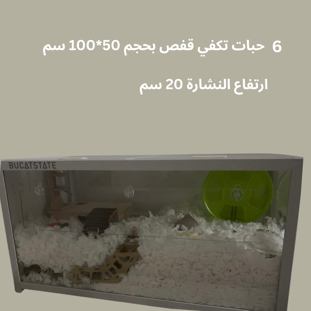 قمنا بتوفيرها لعدم توفر النشارة الامنه مثل نشارة خشب ( اسبن ) وغيرها من الاخشاب الآمنه التي لا تؤثر على الجهاز التنفسي لدى هامسترك.